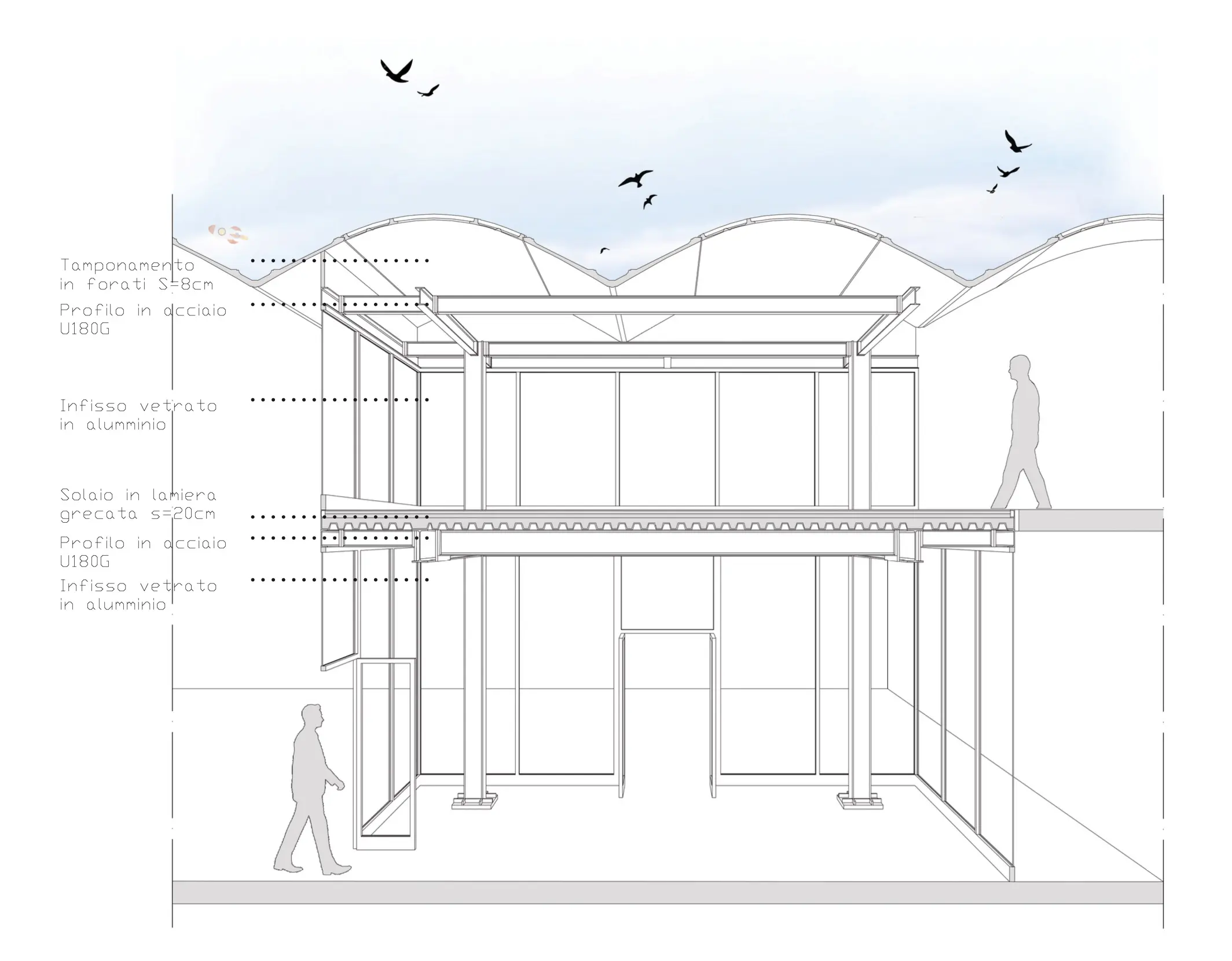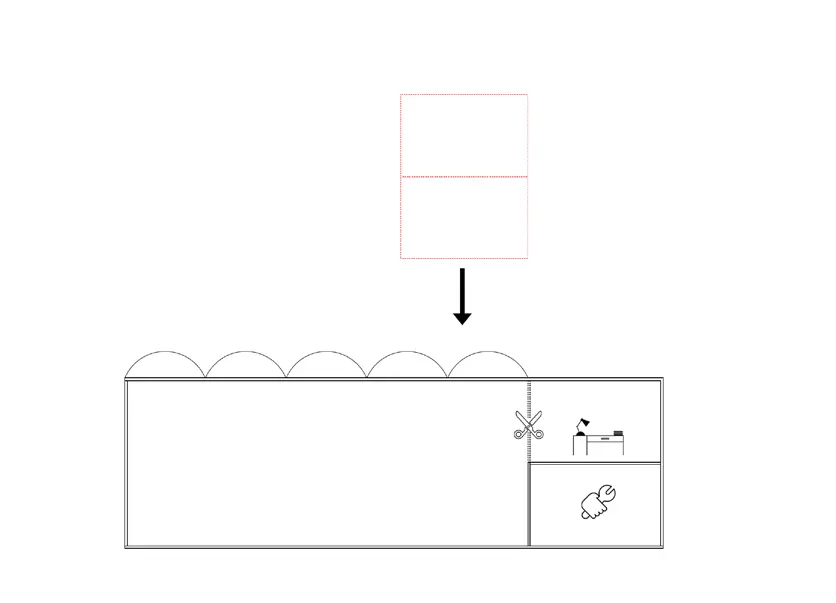 As a architectural response, I proposed to enlargement the space with a new steel and glass modulus.